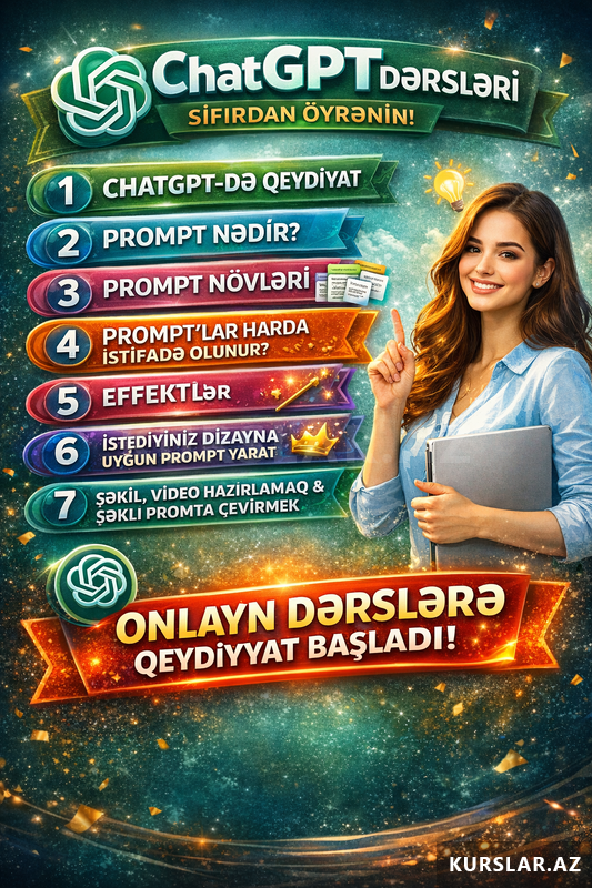 60 AznKursun müddəti: 1 ay Dərs sayı: 14 dərs Format: Whatsap qrup açılacaq. Videolar göndəriləcək. Ev tapşırıqları veriləcək. Kurs bitəndən sonra belə videolar silinmir Mövzular: 1.Süni zəka servislərində qənaət 2