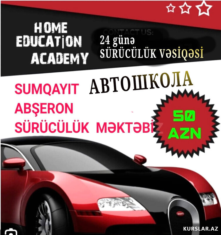 Şirkət50 Azn Əziz xanımlar Home Education sürücülük məktəbi uzun illərdir bütün ABCDE kateqoriyalar üzrə peşəkar sürücülərin hazırlanması ilə məşğuldur. Məktəbimizin fəaliyyətə başlandığı ildən bəri bu sahədə böyük təcrübə