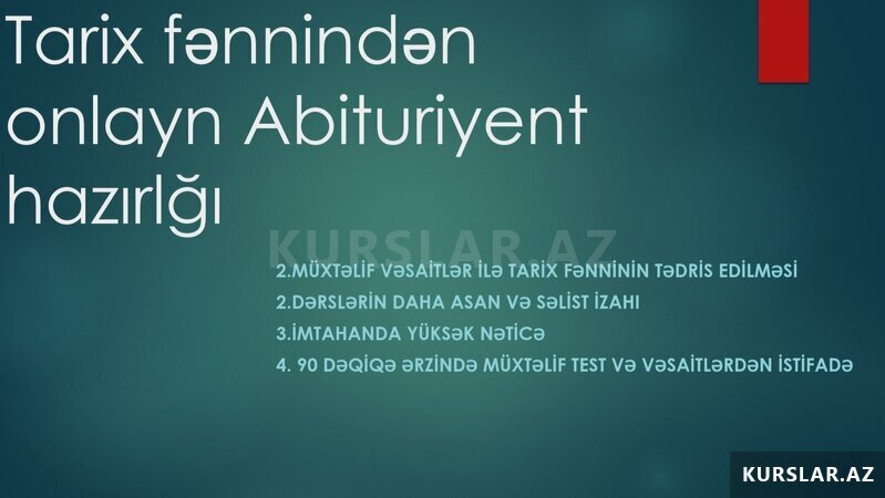 Tarix üzrə qəbul və buraxılış imtahanlarına hazırlaşırsınız? Təcrübəli tarixçi müəllim axtarırsız? Elə isə daha artıq vaxt itirmədən bizə müraciət edin!. Dərslər Azərbaycan və Rus bölməsi üzrə, onlayn şəkildə keçirilir.