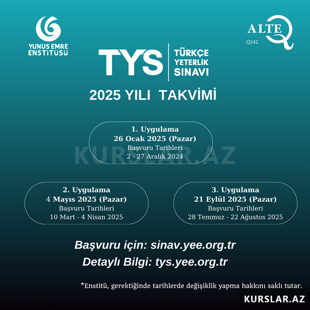 200 Azn Türkiyə Universitetlərinə qəbul üçün müraciət edən tələbələr və qısaca Türk dili bacarıqlarını sənədləşdirmək istəyən hər kəs Türkcə Yetərlilik İmtahanına (TYS'yə) girə bilər.