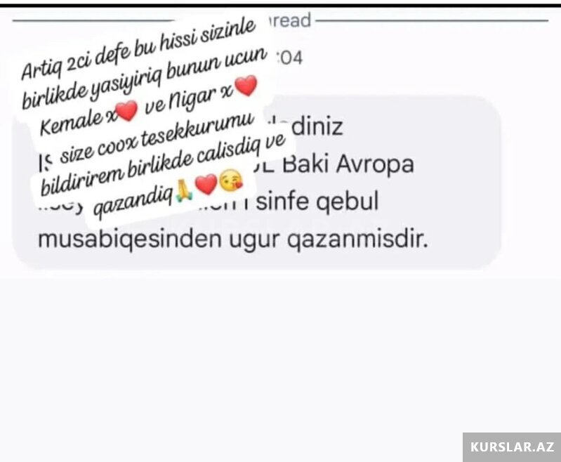 Şirkət70 Azn  İngilis dili, ve azerbaycan dilinden derslerimiz movcuddur dersler 90 deq olmaqla heftede 2 defedir. Etrafli melumat ucun wp