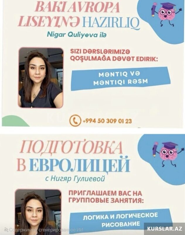 25 Azn  Mən Nurullayeva Xatirə 2024-cü ildə ADPU-nun ibtidai sinif ixtisasını bitirmişəm. Hal hazırda onlayın dərslər verirəm. Dərslərimiz həftədə 3-gün 1-saat yarım olur. Uşaqlarla işləməyi onlara sevgi göstərməyi çox sevirəm.