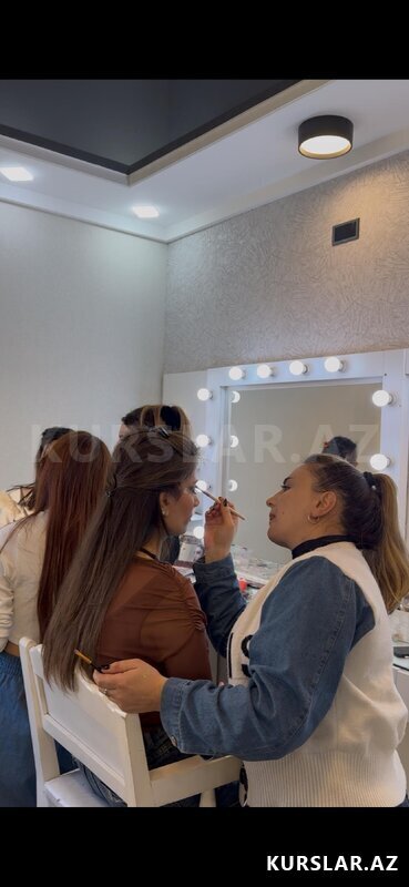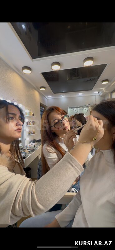 Dərs proqramı: Kursumuza vizaja aid hər şey daxildir. Üz quruluşuna, göz quruluşuna, dərinin rənginə, gözlərin rənginə, saç düzümünə, geyim tərzinə, geyimin rənginə uyğun olaraq müxtəlif makiyaj növləri - sadə makiyaj, gündəlik makiyaj, ziyafət makiyajı, ərəb makiyajı, art makiyaj, 3D makiyajı, gəlin makiyajı, üz korrektoru, burun korrektoru, konturlama, göz quruluşlarına görə ten işləməsi, kiprik düzülməsi, liner çəkilməsi qaydaları və s. öyrədilir.