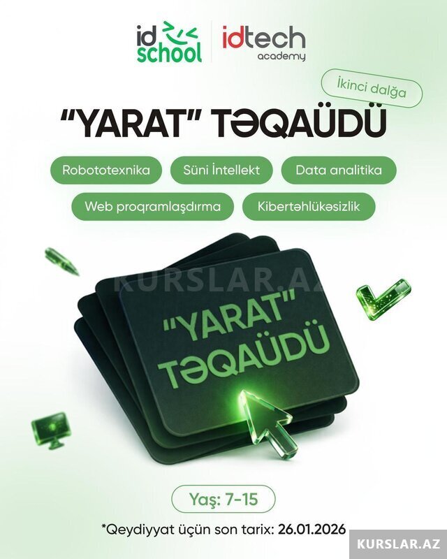 İdschool tərəfindən təqdim olunan Yarat təqaüdündə 40% 60% 100%-ə qədər təqaüd qazanma şansı.