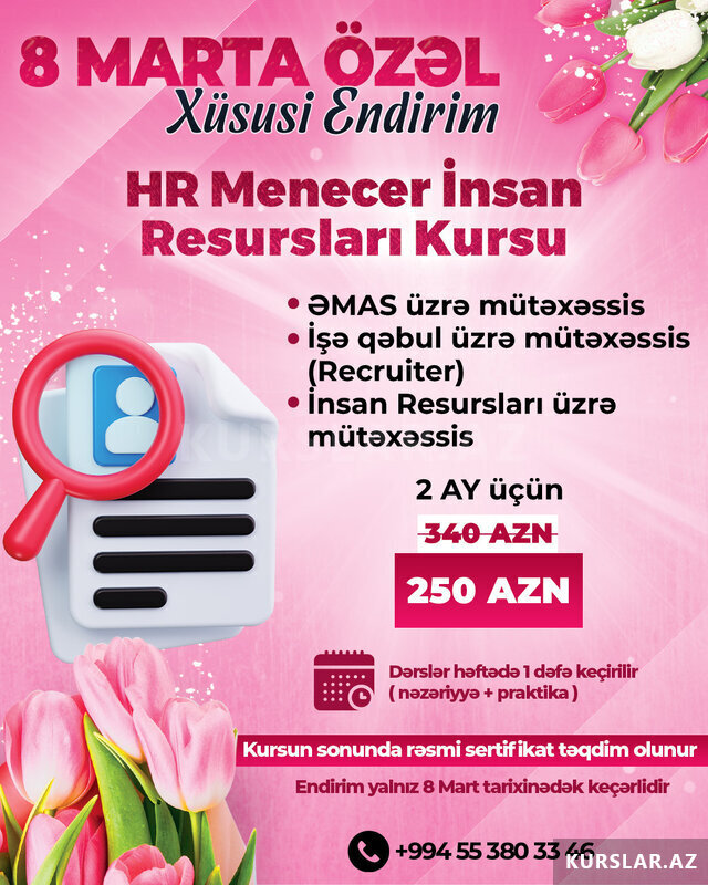 HR Təcrübə Proqramı - Nəzəri və Praktiki Təlim. ƏMAS üzrə mütəxəssis. İşə qəbul mütəxəssisi (Recruiter). İnsan Resursları üzrə mütəxəssis. Təcrübə Proqramının mövzuları:. Əmək qanunvericiliyi və Əmək Məcəlləsi [читат далше]