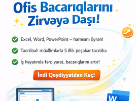 Ofis proqramları müasir iş və təhsil həyatında ən çox tələb olunan texnoloji bacarıqlardandır. Microsoft Windows, Microsoft Office və İnternet istifadə qaydaları üzrə praktiki dərslər!. Tədris olunan mövzular: [читат далше]