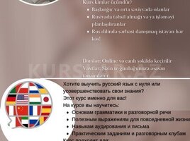Heftede 3 defe ve heftede 2 defe 1 saat rus dili dersleri. Etrafli melumat ucun elage nomresine yazin